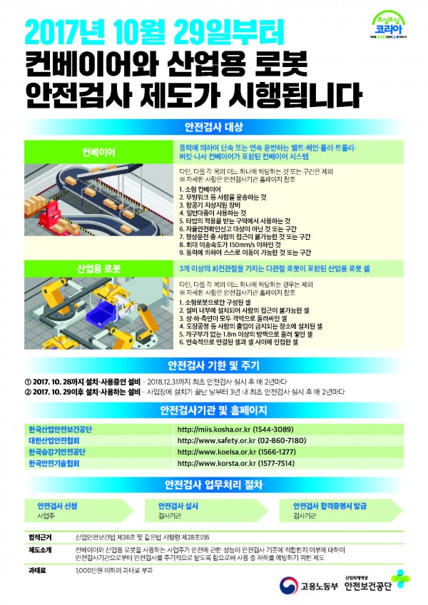 컨베이어 및 산업용 로봇 안전검사 제도 시행 페이지 정보 작성자 황승진 작성일17-11-20 17:22 조회9,806회 댓글0건 관련링크 이전글 다음글 목록 본문 . 댓글목록 등록된 댓글이 없습니다. 이전글 다음글 목록