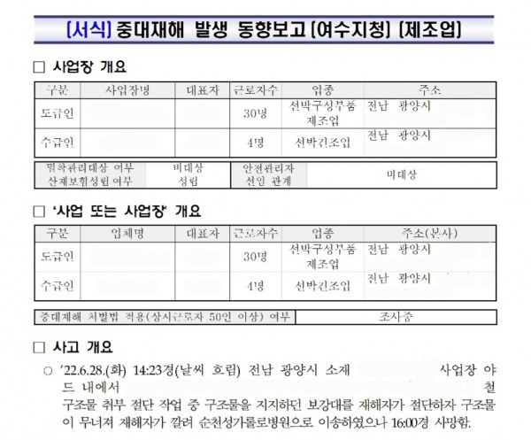 <중대재해> 야드 내 철구조물 취부 절단 작업 중 구조물에 깔림 페이지 정보 작성자 안전경영컨설팅 작성일22-07-14 09:13 조회5,596회 댓글0건 관련링크 이전글 다음글 목록 본문 . 댓글목록 등록된 댓글이 없습니다. 이전글 다음글 목록