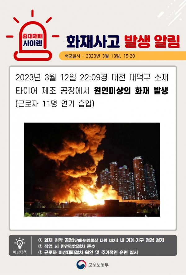<중대재해> 타이어 제조 공장 화재 발생 페이지 정보 작성자 안전경영컨설팅 작성일23-03-28 09:07 조회4,514회 댓글0건 관련링크 이전글 다음글 목록 본문 . 댓글목록 등록된 댓글이 없습니다. 이전글 다음글 목록