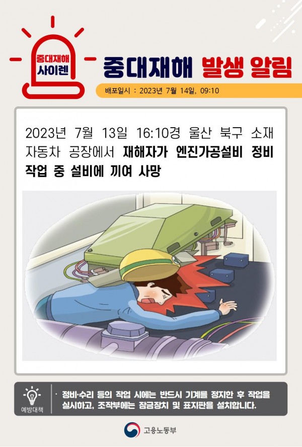 <중대재해>자동차 공장 정비 작업중 설비에 끼임. 페이지 정보 작성자 안전경영컨설팅 작성일23-08-31 16:41 조회4,669회 댓글0건 관련링크 이전글 다음글 목록 본문 ., 댓글목록 등록된 댓글이 없습니다. 이전글 다음글 목록