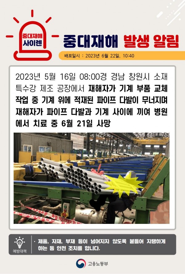 <중대재해>특수강 제조 공장 파이프 무너짐으로 인한 끼임 페이지 정보 작성자 안전경영컨설팅 작성일23-08-31 16:44 조회4,396회 댓글0건 관련링크 이전글 다음글 목록 본문 . 댓글목록 등록된 댓글이 없습니다. 이전글 다음글 목록