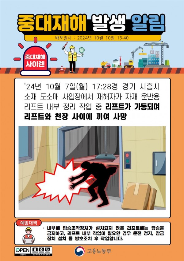 도소매 사업장에서 리프트와 천장 사이에 끼여 사망 페이지 정보 작성자 안전경영컨설팅 작성일24-11-11 08:45 조회2,662회 댓글0건 관련링크 이전글 다음글 목록 본문 . 댓글목록 등록된 댓글이 없습니다. 이전글 다음글 목록