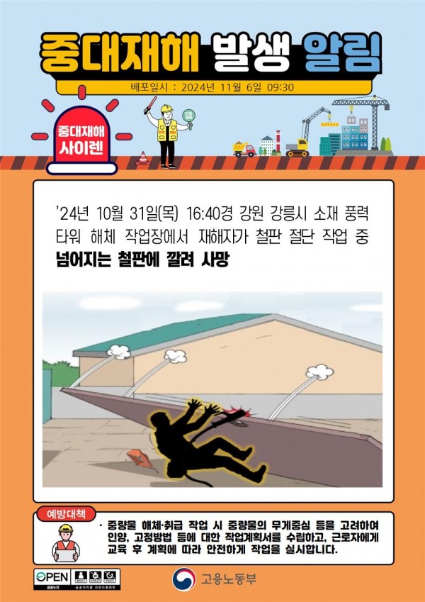 풍력타워 해체 작업 철판 절단 작업 중 철판에 깔림 페이지 정보 작성자 안전경영컨설팅 작성일24-11-11 08:47 조회2,479회 댓글0건 관련링크 이전글 다음글 목록 본문 . 댓글목록 등록된 댓글이 없습니다. 이전글 다음글 목록